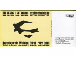 Den Arbeiten von Schmidt ist das Wort „Die Herde“ zugeordnet, genauer kann ich den Bezug von Bezeichnung und Bezeichnetem aufs erste nicht benennen, zwischen beidem klafft ein Sprung. Für die genauere Bestimmung erscheint es mir wichtig, den typografischen Gestus zu beachten, mit dem dieses Wort präsentiert wird, in diesem Gestus erst, erst in dem visuellen Inhalt, in dem sich die Aussage mitteilt, in der Schreibart des Wortes und seiner schriftbildlich ornamentalen Zuordnung zu Untertiteln und Ankündigungs - Daten treten für mich die künstlerisch relevanten Inhalte zu Tage.