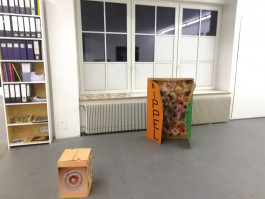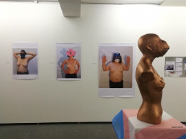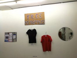 2 Videos, Informationen zum juristischen Kontext und die Möglichkeit, vor Ort Fotos der eigenen Brustwarzen zum Projekt hinzuzufügen, ergänzen die Ausstellung.