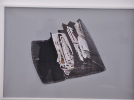 Hier zeugt die einstige Lebenswelt der Verstorbenen von der Suche nach dem Eigenen, Angemessenen, von der Suche nach Identität, dies geschieht via Gebrauchsspuren und Arrangement der Möbel und der Alltaggegenstände, siehe die vier kleinen Interieurs, ebenso wie die Fotografien in der kleinen abgenutzten Brieftasche, siehe große Arbeit.